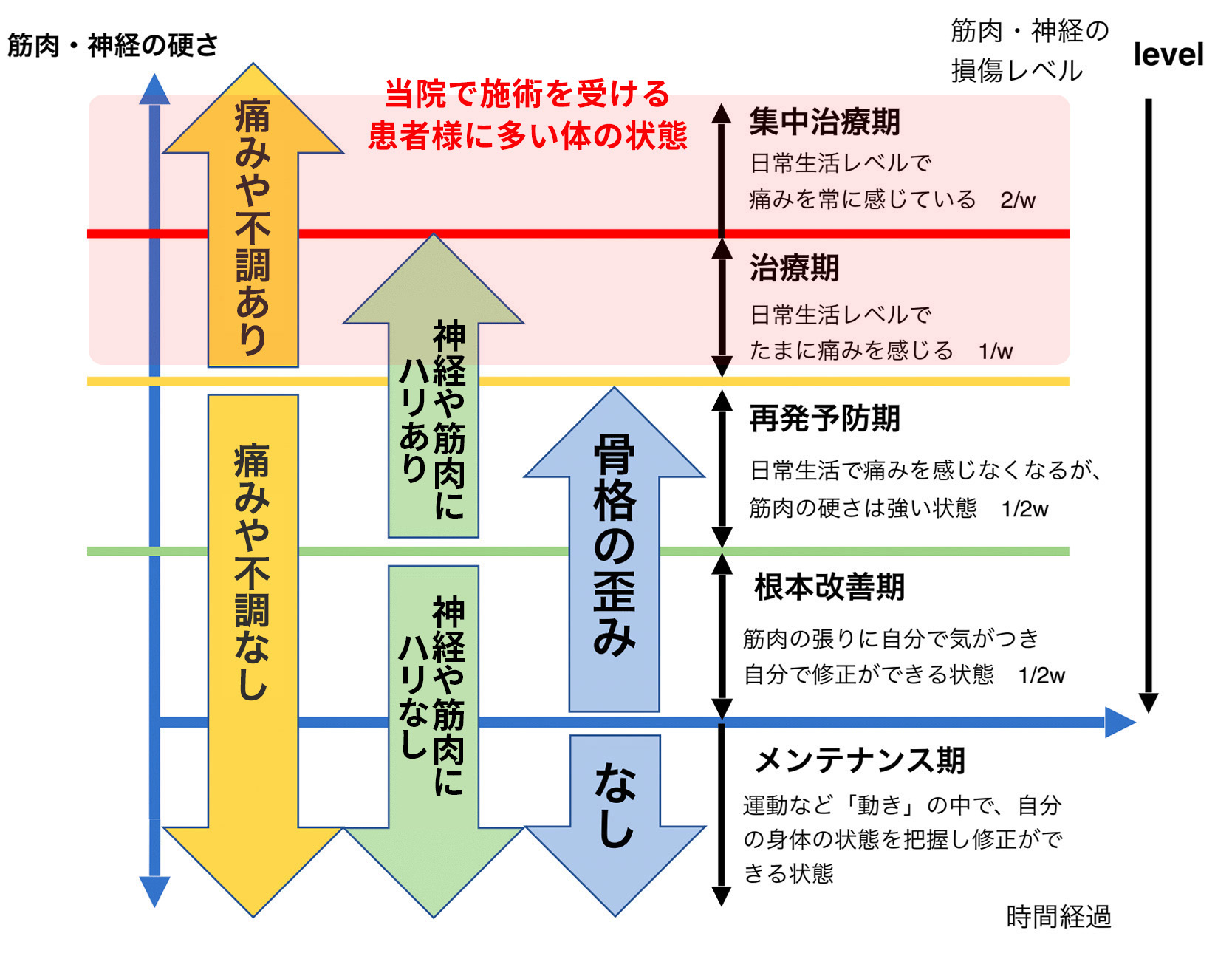 そして、それぞれの段階で必要な施術内容をご説明するので、患者様も健康な体になる為に何をすべきかが明確になります。